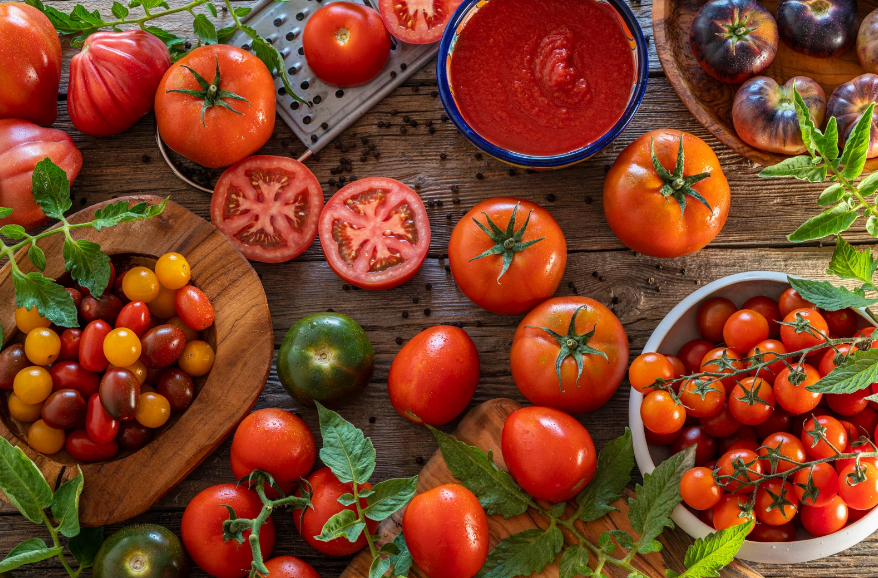 토마토는 100g당 약 18kcal로, 칼로리가 낮고 항산화 물질인 라이코펜이 풍부해 다이어트와 피부 건강에 좋습니다. 생으로 먹어도 좋고, 샐러드나 스무디로 활용해도 맛있게 즐길 수 있습니다.