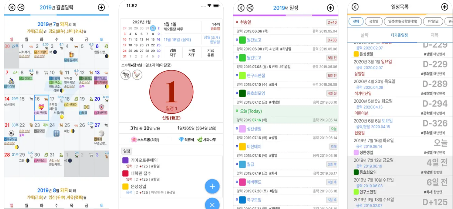 - 사용방법: 음력 일정과 양력을 동시에 확인할 수 있는 어플로, 한국 전통 일정 확인에 유용합니다.