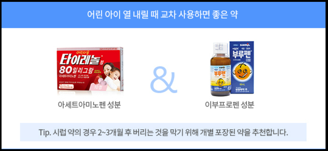 보통 이 약들은 4~6시간마다 먹어야 안전합니다. 하지만 고열에 시달리는 어린 자녀가 한 가지 약을 먹고 두 시간이 지나도 열이 내리지 않는다면 다른 성분의 약을 다시 먹일 수 있습니다. 영유아의 경우 고열이 지속되면 뇌가 스트레스를 받아 열성 경련이 나타날 수 있으므로 열을 떨어뜨리는 게 가장 급하고 중요합니다. 아세트아미노펜·이부프로펜 성분의 해열제를 모두 구비해 응급 상황 시 두 가지를 교차 사용하기를 권합니다.