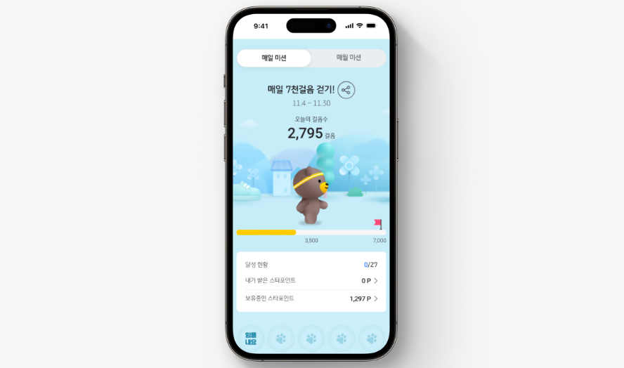 7,000보 걸으면 스탬프 적립 → 스타포인트 획득