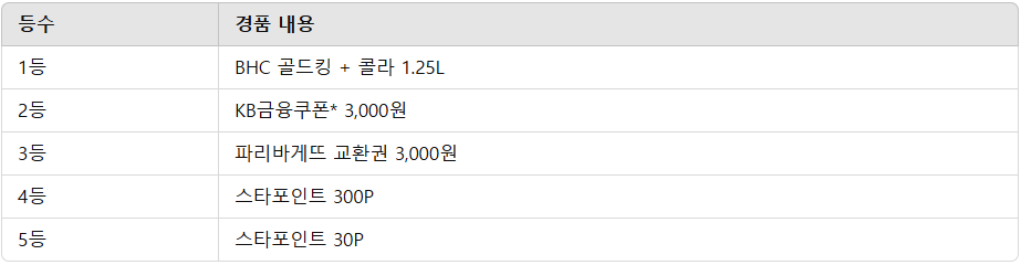 - 1등(500만원) 당첨 시 KB국민은행 계좌 필요