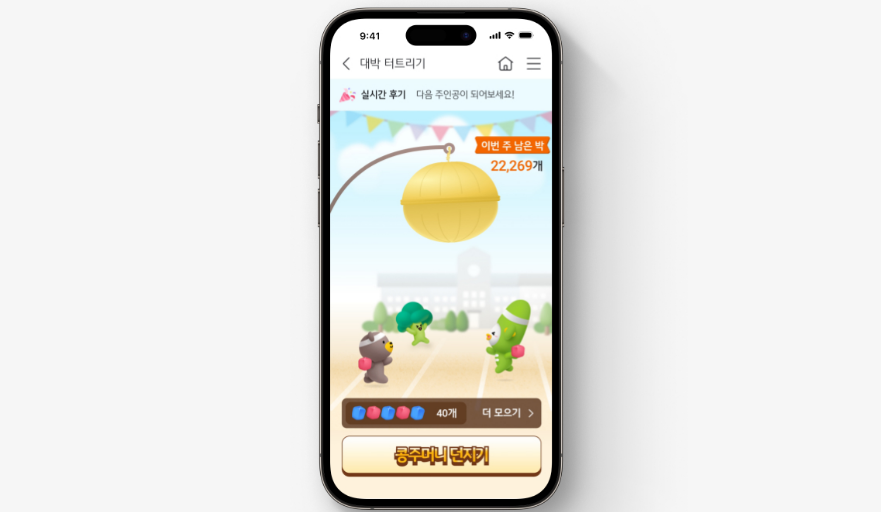 콩주머니를 모아 박을 터트리면 현금 또는 스타포인트를 받을 수 있어요!
