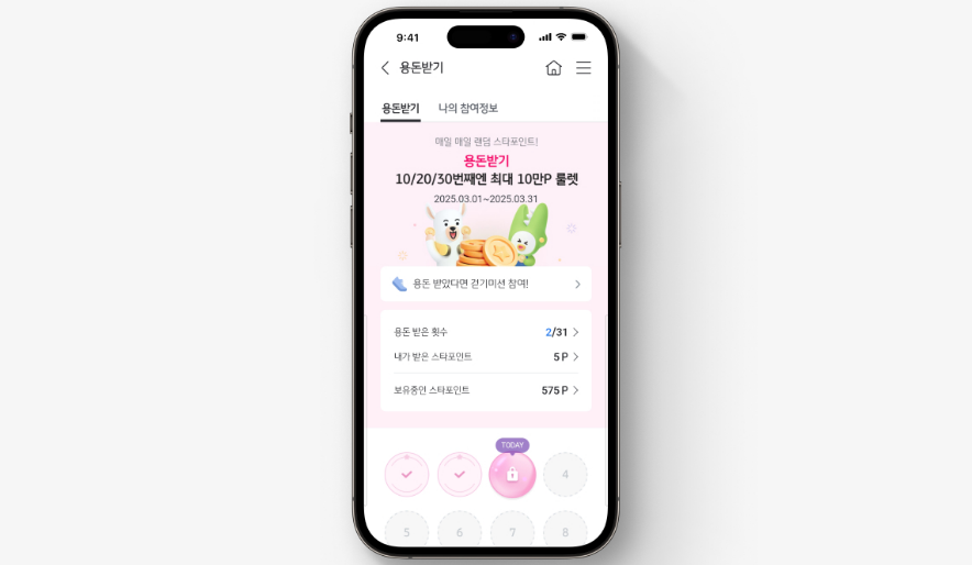 1. 용돈받기 - 하루 한 번 포인트 적립!