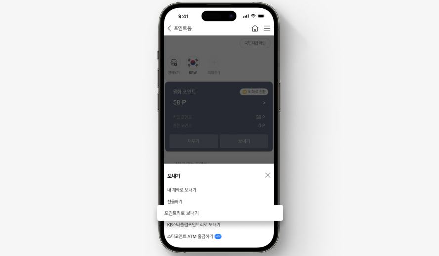 스타포인트는 KB금융그룹의 통합 포인트인 포인트리(1P=1원) 로 전환하여 더 폭넓게 사용할 수 있어요!