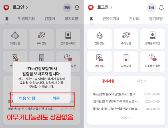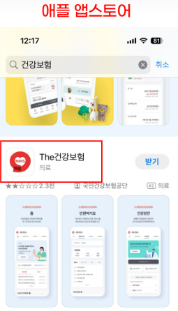 - 어플 설치: 앱스토어(아이폰)나 구글 플레이스토어(안드로이드)에서 'The 건강보험'을 검색하여 어플을 설치합니다.