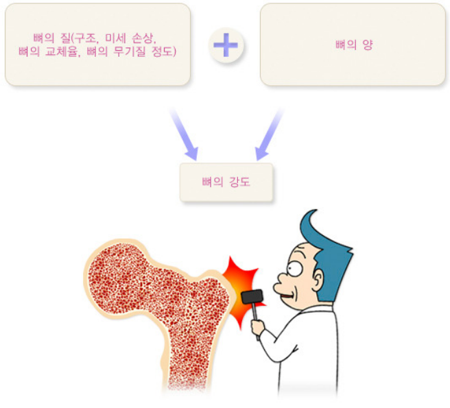 '골다공'이라는 말은 뼈에 구멍이 생긴다는 뜻이며, '골다공증'은 뼈의 강도가 약해져 쉽게 부러지는 상태를 의미합니다. 뼈의 강도는 뼈의 질과 양에 따라 결정되며, 골다공증 진단은 주로 골밀도를 측정하여 이루어집니다. 세계보건기구는 T 점수를 기준으로 골다공증 진단 기준을 제시하고 있습니다.
