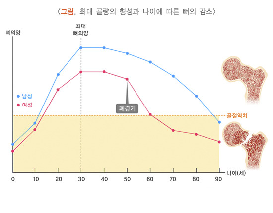 뼈는 단순한 고정 조직이 아니라 끊임없이 생성과 흡수 과정을 반복하며 변화하는 살아 있는 장기입니다. 성장이 멈춘 후에도 뼈는 매년 10%씩 교체되며, 10년 후에는 완전히 새로운 뼈로 바뀝니다. 사춘기 동안 성인 골량의 90%가 형성되고, 35세 이후부터는 서서히 감소하기 시작합니다. 특히 여성은 50세 전후로 폐경을 겪으면서 빠르게 골량이 줄어들며, 폐경 후 3~5년 동안 급격한 골 소실이 일어납니다.