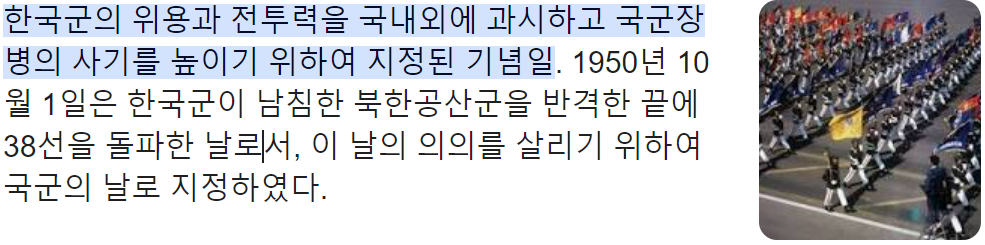 대한민국의 군사적 자긍심과 애국심을 고취시키는 중요한 역할을 해왔습니다. 앞으로도 국군의 날이 다양한 변화를 통해 국민과 함께하는 행사로 발전하고, 국가 안보의 중요성을 재확인하는 계기가 될 수 있도록 지속적인 관심과 노력이 필요합니다.