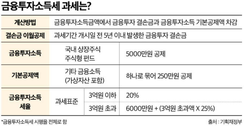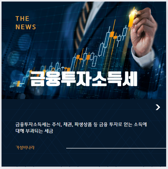 금융투자소득세는 주식, 채권, 파생상품 등 금융 투자로 얻는 소득에 대해 부과되는 세금이다. 이 세금은 2023년에 도입 예정이었으나, 경제 상황과 투자자들의 요구를 반영해 2년간 유예된 후 2024년부터 본격적으로 시행될 예정이다. 금융투자소득세는 투자 이익에 대한 세금의 형평성을 강화하고, 고소득자의 세금 부담을 높이는 데 그 목적이 있다.