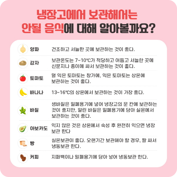 오히려 상온 보관이 더 적합한 경우도 있습니다.