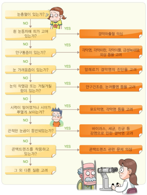 - 한쪽 눈만 충혈이 발생했는지, 양쪽 눈 모두 충혈이 있는지
