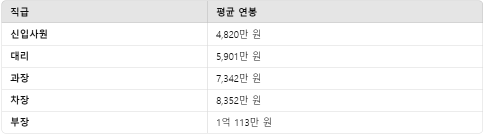 신입사원의 평균 연봉은 4,820만 원으로, 대기업의 입사 첫 해에는 다른 직급에 비해 낮은 연봉을 받습니다. 그러나 신입사원에게도 일정 수준의 경쟁력 있는 보상이 제공되며, 이는 채용 시장에서 대기업의 매력을 높이는 요소 중 하나입니다.
