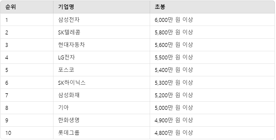 대기업 연봉 순위 (직원, 임원, 초봉) – 2024년 기준