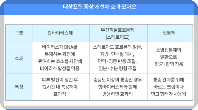 • 치료의 핵심: 대상포진 치료의 가장 중요한 방법입니다.