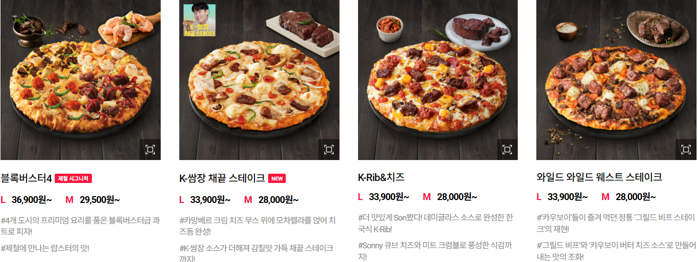 - K-쌈장 채끝 스테이크 피자: 고급스러운 스테이크와 매콤한 쌈장의 만남