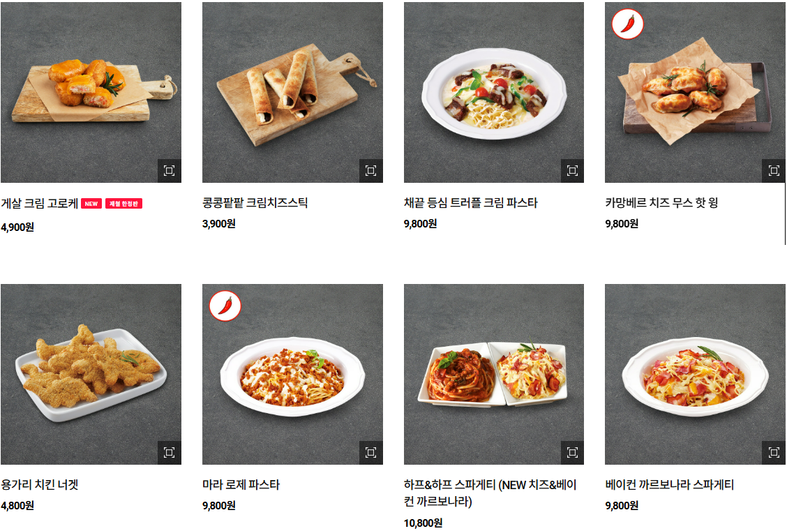 - K-Rib&치즈 피자: 육즙 가득한 립과 고소한 치즈가 어우러진 메뉴