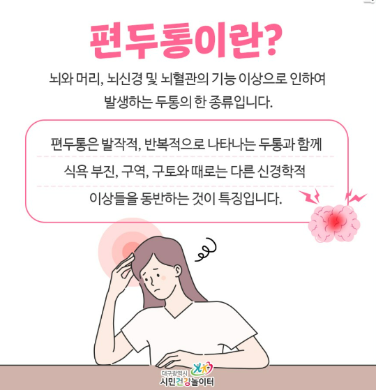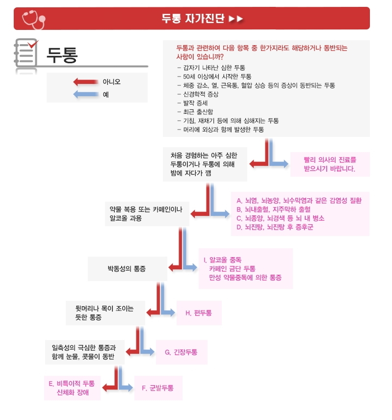 두통은 매우 흔한 증상이지만, 두통의 위험사인이 있다면 다른 질환이 원인일 가능성이 높으므로 바로 의사 진료를 받아야 합니다.