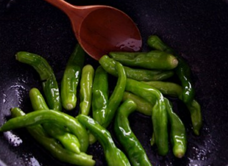- 꽈리고추 볶기: 2번에 꽈리고추를 넣고 살짝 볶아줍니다.