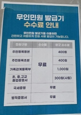 무인민원발급기로 발급받을 수 있는 서류
