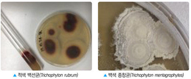 - 백색 종창균 (Trichophyton mentagrophytes): 소수포형(발바닥에 작은 물집이 생기는 형태)에서 주로 발견됩니다.