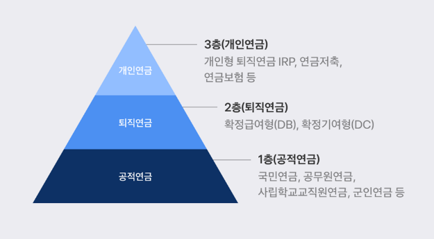 우리나라 연금 시스템은 3층 연금 구조로 되어 있습니다. 이는 국가, 직장, 개인이 각각 부담을 나누어 은퇴 후 삶을 지원하는 구조입니다.