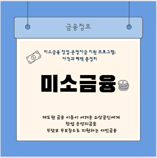 미소금융은 금융 소외계층을 위한 정부 지원 금융 프로그램으로, 창업자 및 소상공인의 경제적 자립을 돕기 위해 다양한 자금을 지원하고 있습니다. 이번 포스트에서는 미소금융의 창업·운영자금 지원에 대한 상세한 정보를 제공합니다. 각 프로그램의 지원 대상, 대출 한도, 금리, 상환 조건 등을 알아보세요.