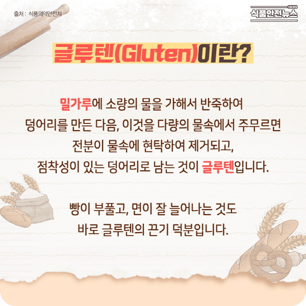 빵이 부풀고, 면이 잘 늘어나는 것도 바로 글루텐의 끈기 덕분입니다.