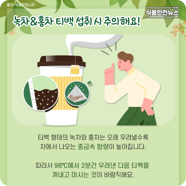 티백 형태의 녹차와 홍차는 오래 우려낼수록 차에서 나오는 중금속 함량이 높아집니다.