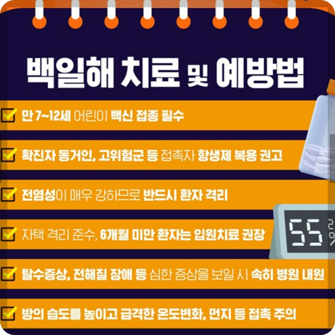 백일해는 적절한 치료와 관리를 통해 완치될 수 있는 질환입니다. 하지만 백일해는 특히 영유아에게 심각한 합병증을 유발할 수 있으므로 조기 진단과 치료가 매우 중요합니다. 백일해 증상이 나타나는 경우 즉시 병원을 방문하여 진료를 받고, 의료 전문가의 지침에 따라 치료와 관리를 철저히 해야 합니다.