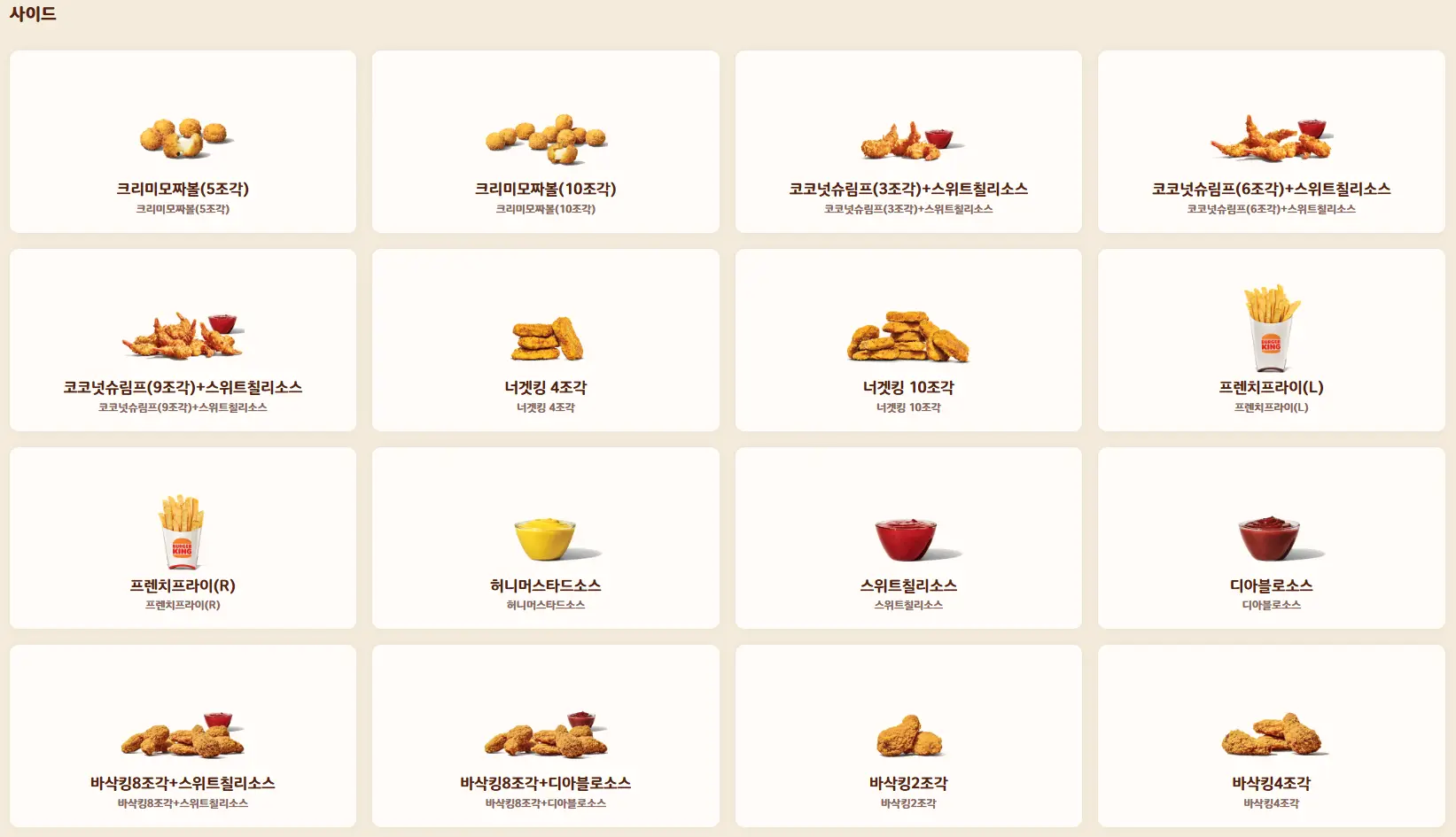 버거킹의 사이드 메뉴는 단순한 곁들임이 아니라, 하나의 완성된 메뉴로도 충분한 매력을 가집니다.