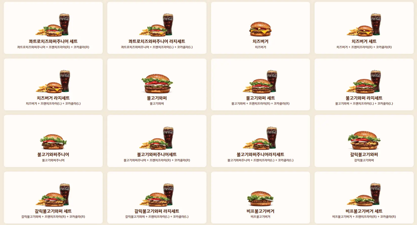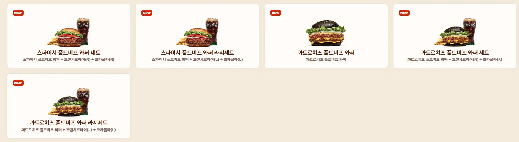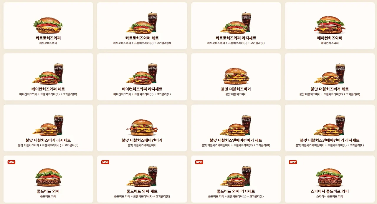 - 콰트로 치즈 와퍼 🧀: 4가지 치즈가 들어간 진한 풍미의 버거. 치즈 러버라면 필수!