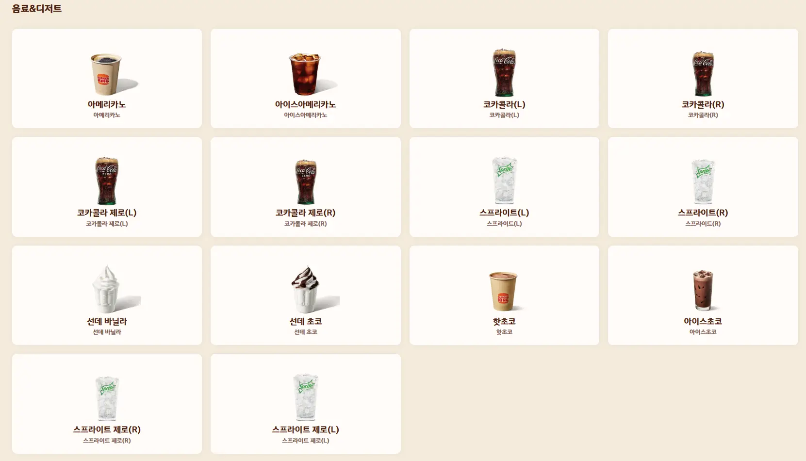 | 음료수 | 다양한 음료수를 선택할 수 있습니다. (코카콜라, 스프라이트 등) | 식사가 끝난 후 시원한 음료로 마무리하기 좋은 선택입니다. |