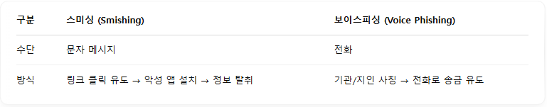 💡 스미싱은 SMS + 피싱(Phishing)의 합성어예요.