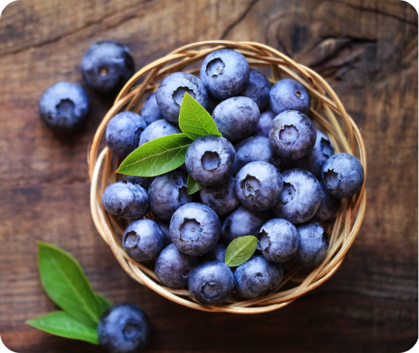-안토시아닌: 블루베리의 대표적인 항산화 물질로 눈 건강 개선, 인지 기능 향상, 염증 감소 등 다양한 효과를 제공합니다.