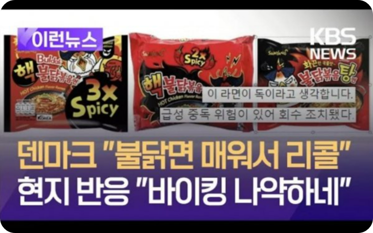 덴마크가 불닭볶음면을 리콜한 이유는 해당 제품의 높은 캡사이신(capsaicin) 함량이 건강에 잠재적인 위험을 초래할 수 있기 때문입니다. 덴마크 식품안전청(DVFA)은 2024년 6월, 삼양식품의 불닭볶음면 중 3X Spicy, 2X Spicy, 그리고 Hot Chicken Stew 세 가지 제품을 리콜했습니다. 이 결정은 해당 제품들이 너무 매워서 소비자들에게 급성 중독의 위험을 초래할 수 있다는 이유로 이루어졌습니다.