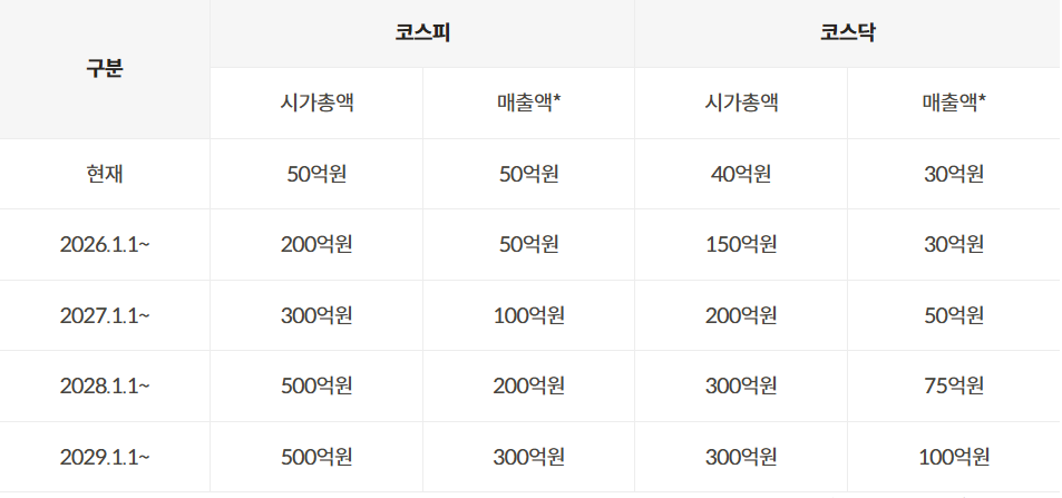 💡 시가총액과 매출액 기준이 대폭 상향됨에 따라, 재무 상태가 부실한 기업들은 상장 유지가 더욱 어려워질 전망입니다.