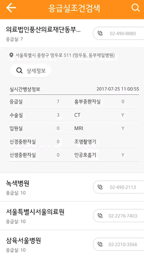 - 상세 정보 확인 (진료시간, 진료과목, 실시간 병상정보 등)