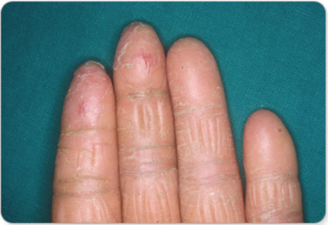 피부 표면의 지질 감소로 인해 발생하는 습진으로, 건조한 공기에 노출될 때 주로 나타납니다. 노인에게서 흔히 발생하며, 치료로는 보습제 사용과 약한 스테로이드 도포가 권장됩니다.