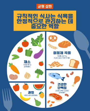 규칙적인 식사는 식욕을 안정적으로 관리하는 데 중요한 역할을 합니다. 하루 세 끼를 규칙적으로 먹음으로써 혈당을 일정하게 유지하고, 갑작스러운 배고픔으로 인한 폭식을 방지할 수 있습니다.