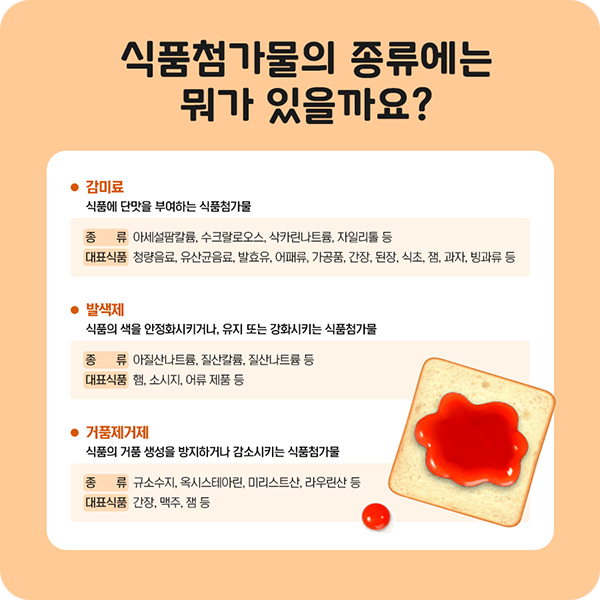 간단히 말해, 가공식품에 특별한 목적을 가지고 첨가되는 물질이라고 생각하면 됩니다.
