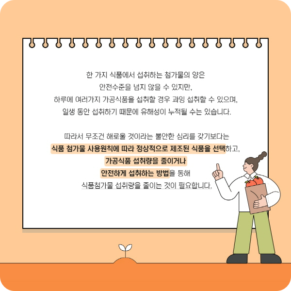 식품첨가물 섭취량을 줄이는 것이 필요합니다.