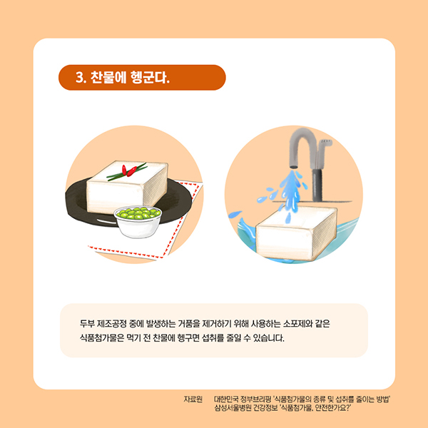 식품첨가물은 먹기 전 찬물에 헹구면 섭취를 줄일 수 있습니다.