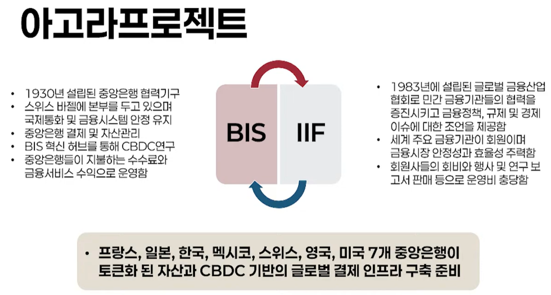아고라 프로젝트는 BIS가 주도하는 가장 큰 규모의 프로젝트로, 미국, 영국, 일본, 프랑스, 스위스 등 5개 주요 기축통화국과 한국, 멕시코 중앙은행이 함께 참여합니다. 민간 금융사들도 국제금융협회(IIF)와 협력하여 이 프로젝트에 동참하며, 그 중 한국은행은 IT 강국으로서 그간의 CBDC 연구 및 개발 성과를 인정받아 초기 멤버로 포함되었습니다.