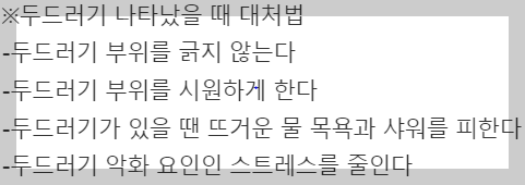 - 증상이 심해지거나 지속되면 피부과 전문의를 찾아가 진료를 받는 것이 좋습니다.