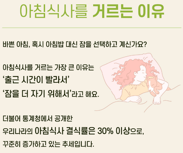 지금부터라도 작은 실천을 시작해보세요. 아침식사를 통해 활력 있는 하루를 만들어가는 습관, 오늘부터 함께 시작해보는 건 어떨까요?