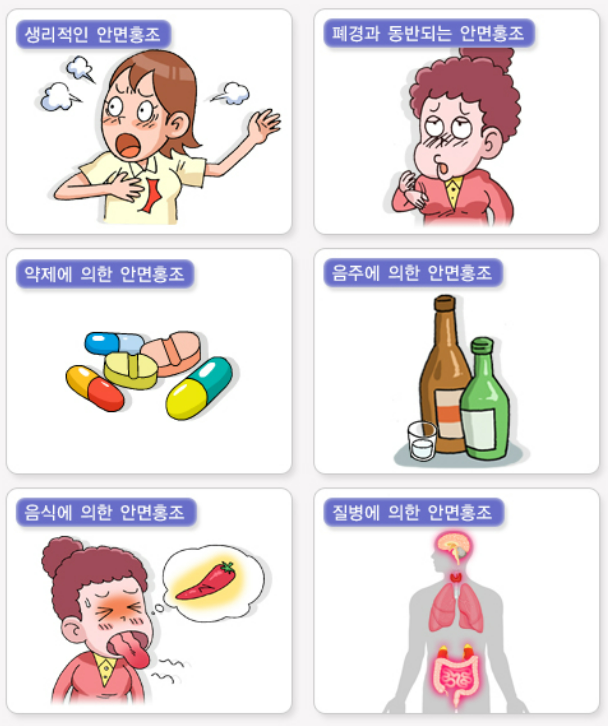 - 음주도 안면홍조를 유발할 수 있으므로 줄이는 것이 좋습니다.