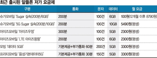알뜰폰 업체 슈가모바일은 최근 LG유플러스망을 기반으로 월 100원만 내면 6GB의 데이터를 사용할 수 있는 요금제를 출시해 화제를 모았습니다. 이 요금제는 1년 후 월 8790원으로 가격이 인상되지만, 첫 1년 동안 매달 100원이라는 매우 저렴한 비용으로 이용할 수 있어 가성비가 뛰어납니다. 이 밖에도 평생 월 7150원에 데이터 10GB를 제공하는 요금제 등 다양한 선택지가 제공되고 있습니다.