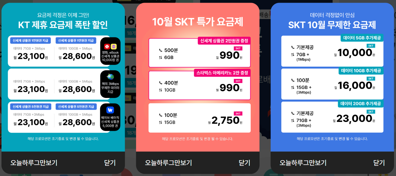- 다양한 요금제: 데이터, 통화, 문자 등 사용 패턴에 맞춰 다양한 요금제를 선택할 수 있습니다.
