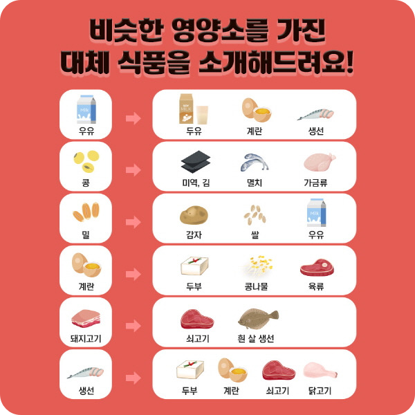 비슷한 영양소를 가진 대체 식품을 소개해드려요!