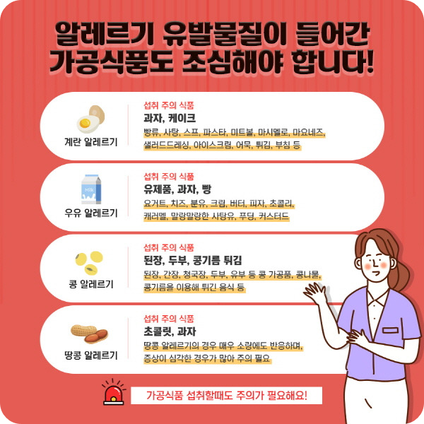 알레르기 유발물질이 들어간 가공식품도 조심해야 합니다!
